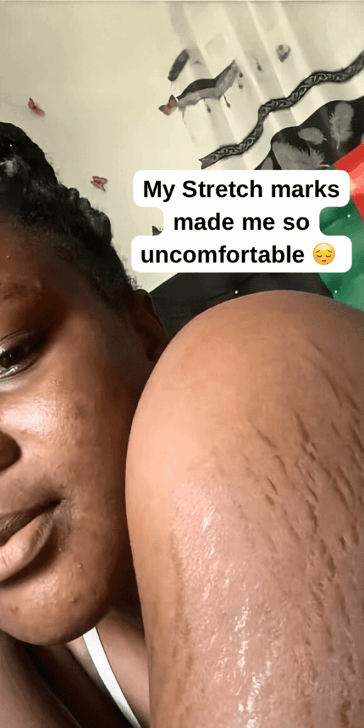 everywhere had deep stretch marks that made me feel insecure and uncomfortable in my own body. I couldn’t wear Sleeveless tops, Crop shirts, or bum shorts.