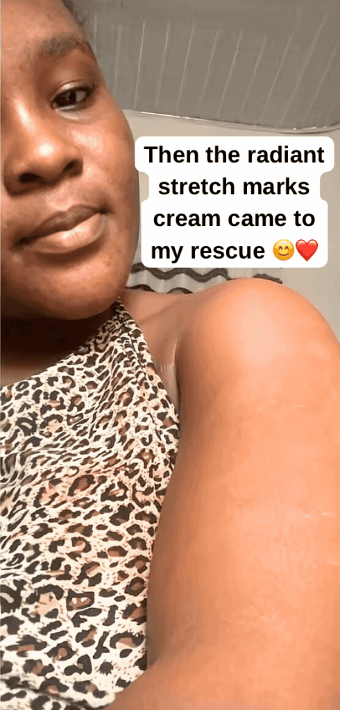 “I started using this cream after having my baby, and it’s been a game-changer. My stretch marks are almost invisible now, and my skin feels soft and hydrated. It’s so gentle, too! Highly recommend for new mums or anyone looking for real results.” — Amaka A., Abuja